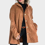 Υποδεχτείτε τον κρύο καιρό με το κομψό κοτλέ παλτό Callista, ένα απαραίτητο κομμάτι που σας κρατά ζεστούς χωρίς να θυσιάζετε το στυλ σας. Κατασκευασμένο από υλικά υψηλής ποιότητας και με διαχρονικό σχεδιασμό, αυτό το παλτό σας εγγυάται ότι θα δείχνετε και θα νιώθετε υπέροχα, ανεξάρτητα από τον καιρό.